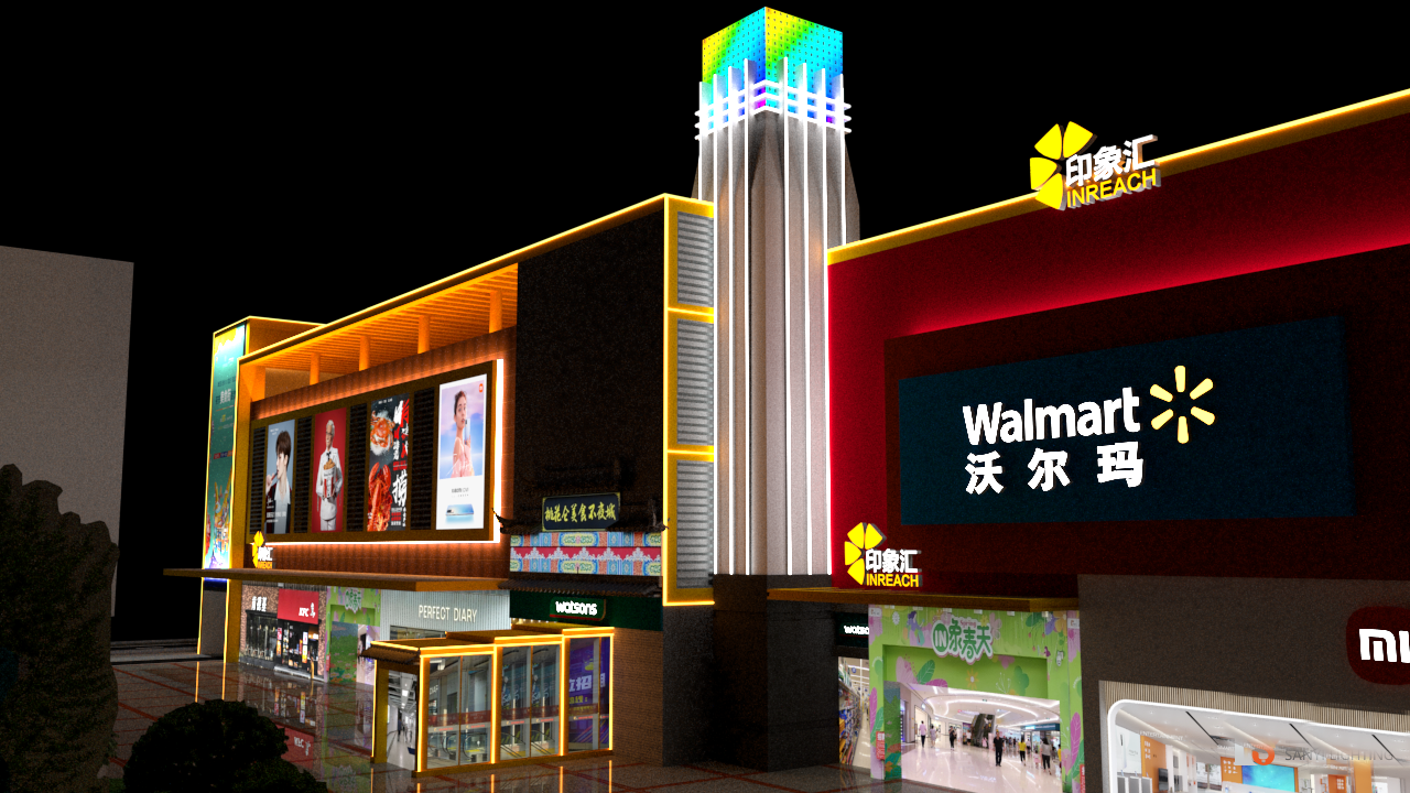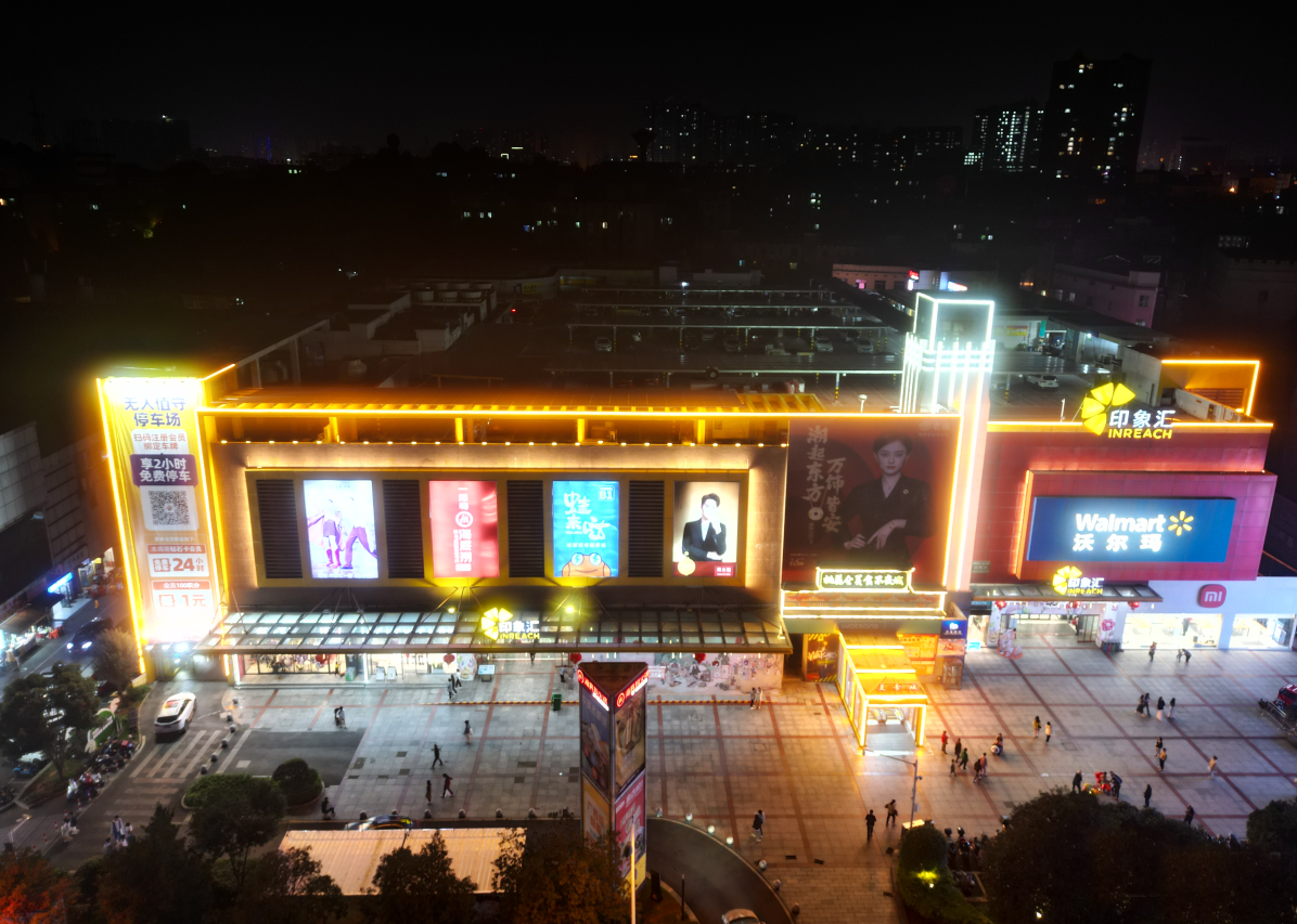 益陽印象匯坐落于赫山區(qū)桃花侖西路 555 號,作為印力集團布局湘中的重要商業(yè)載體,這里匯聚了沃爾瑪、海底撈、茶顏悅色等數(shù)十家知名品牌,既是赫山區(qū)商超人氣榜的榜首???,也是承載市民日常消費與社交休閑的核心空間。然而,隨著城市夜景美學的升級與夜間經(jīng)濟的發(fā)展,原有外墻燈光逐漸顯現(xiàn)出亮度不均、風格單一、能耗偏高的問題,與商圈日益增長的品質需求形成反差。